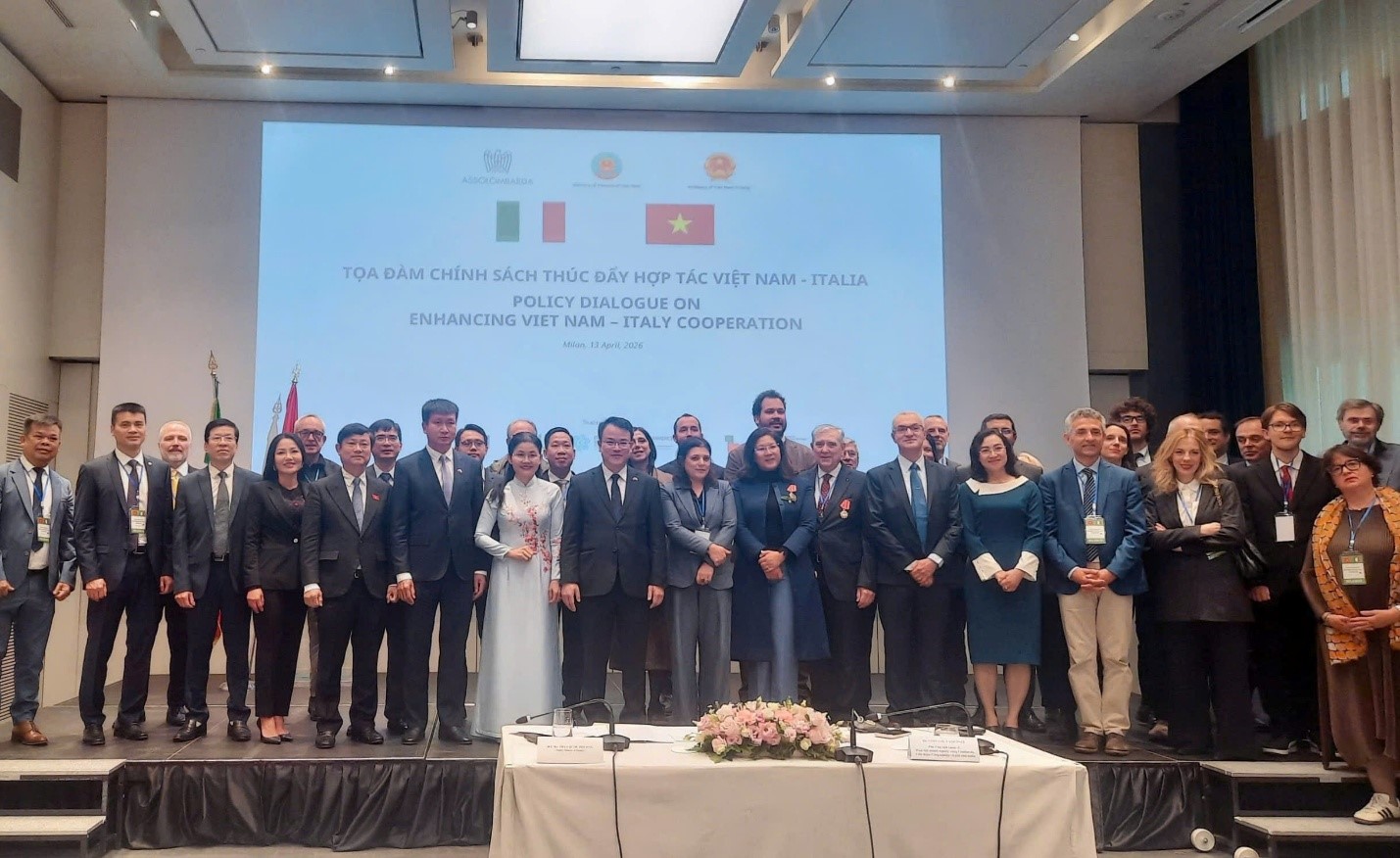 Within the framework of accompanying the National Assembly Chairman, the VDB delegation led by Deputy General Director Nguyen Long Van attended the Policy Dialogue on Enhancing Vietnam–Italy Cooperation held on April 13, 2026, in Milan, Italy. The dialogue was jointly organized by the Ministry of Finance of Vietnam, the Lombardy Business Association, and the Embassy of Vietnam in Italy. This is a particularly important event in the context of the more than 50 years of friendly and cooperative relations between Vietnam and Italy enter a new, deeper, and more effective phase of development.